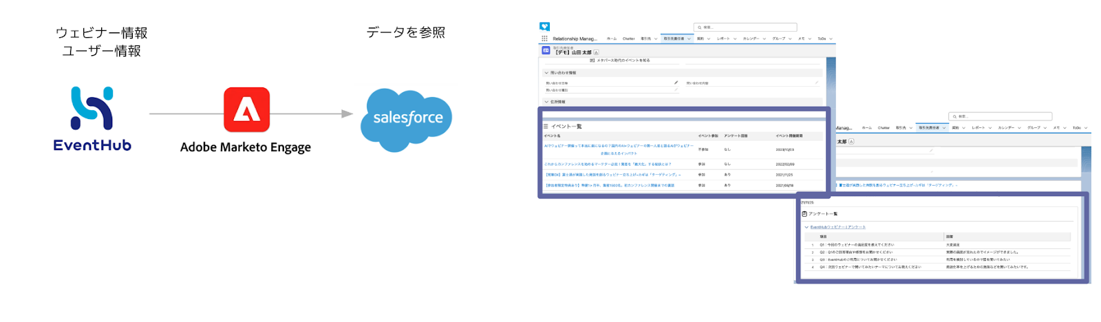 ウェビナー後のアプローチの際には、EventHubはMarketoと連携してすぐにあらゆる情報がSalesforceの顧客情報で一元化できるため、「ISが今どこにアプローチすべきか」「どんな課題を抱えているか」が可視化され、効率的に大きな効果を上げることができています。