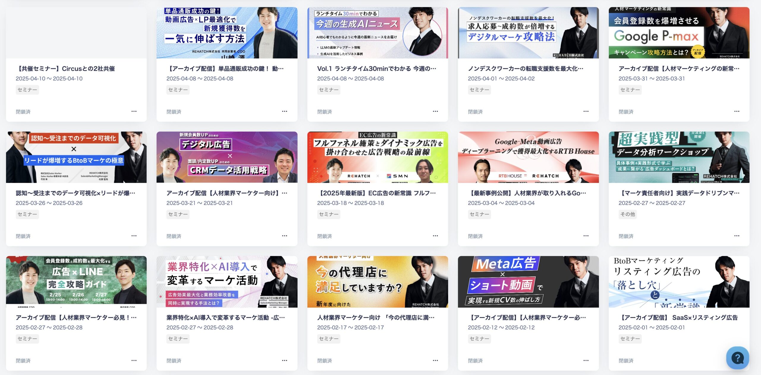 以前まではとにかくやりましょうという感じでいろいろやってきましたが、直近の取り組みでは、ウェビナーごとに明確な目的を決めて回数を決めてやっていく方向にしています。
